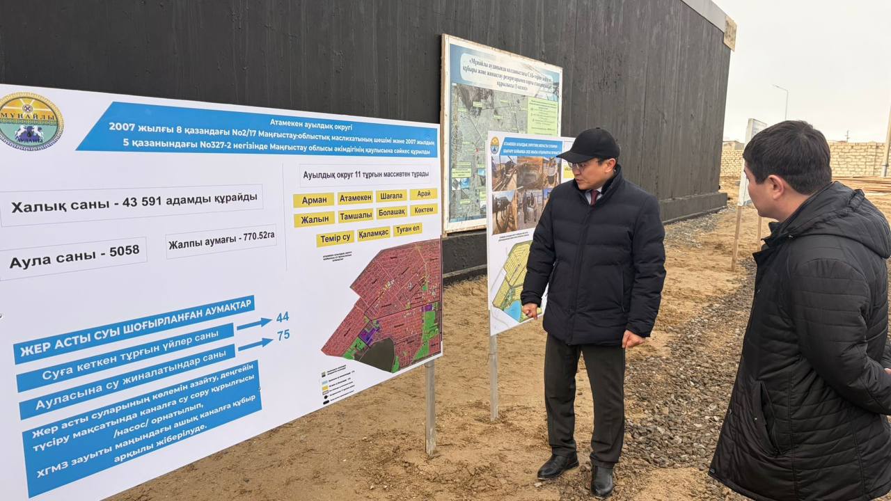 18 ақпан күні Маңғыстау облысының әкімі Нұрдәулет Қилыбай Атамекен ауылдық округіне барып, су айдау станциясының құрылыс барысымен танысты.
