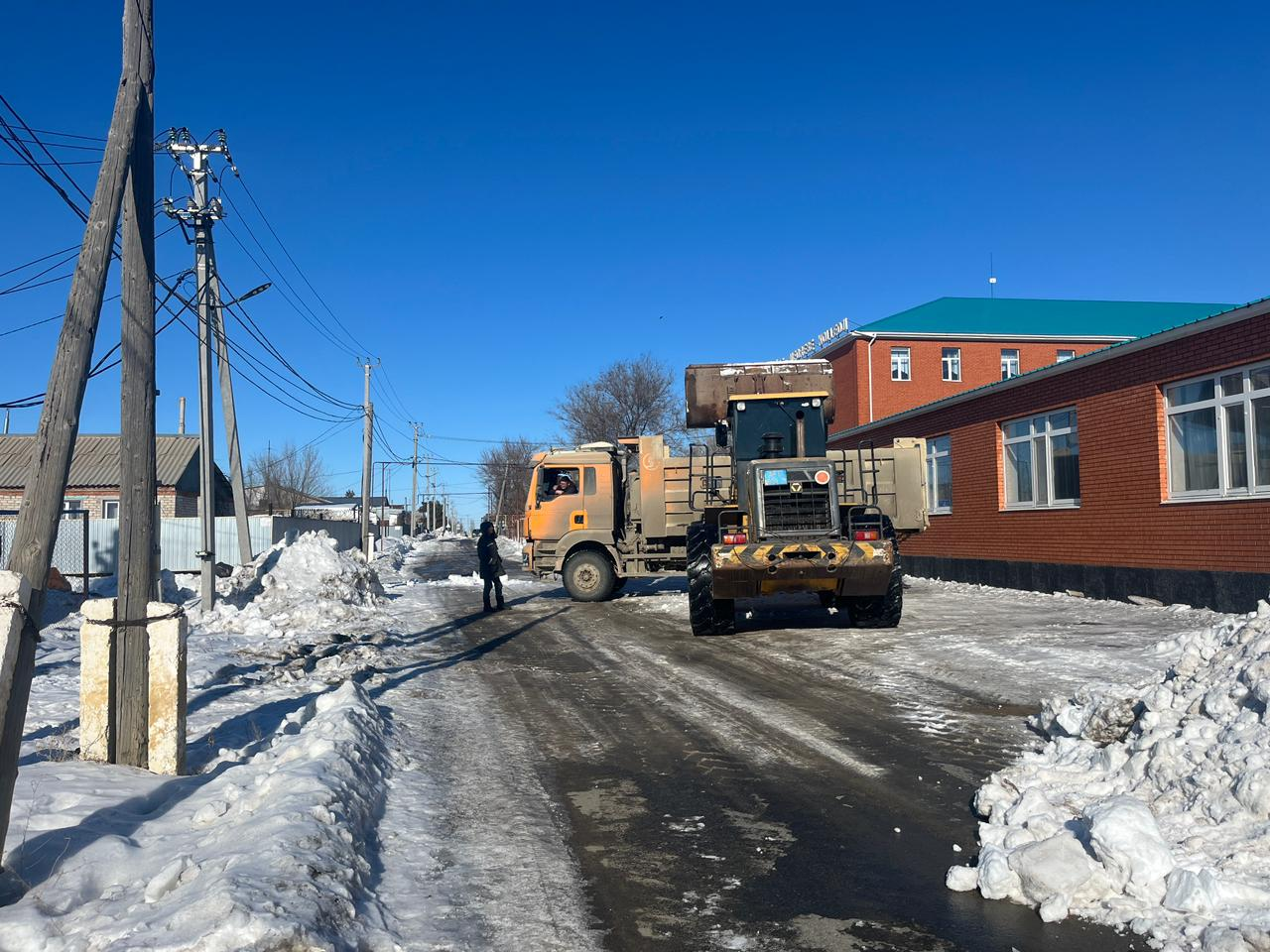 Қар тазалау және сыртқа шығару жұмыстары ең алдымен Алға көшесінен бастау алды. Арнайы техникалардың көмегімен көше бойында жиналған қалың қар аршылып, ауыл сыртына тасымалдануда. Бұл жұмыстар алдағы уақытта ауылдың басқа да көшелерінде кезең-кезеңімен жалғасатын болады.