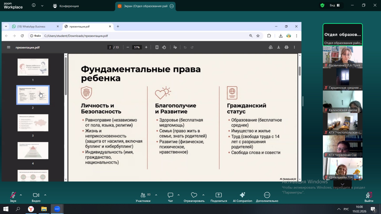 Осындай іс-шараларды өткізу педагогтердің құқықтық сауаттылығын арттыруға және білім беру саласындағы қолданыстағы заңнама нормаларын бірізді түсінуді қалыптастыруға ықпал етеді.
