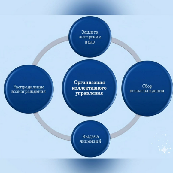 Ұжымдық негізде музыкалық шығармаларға, әдеби мәтіндерге, фотосуреттерге, бағдарламаларға және басқа да шығармашылық жұмыстарға авторлық құқықтар, сондай-ақ орындаушылардың, фонограмма және бейнеөнім продюсерлерінің сабақтас құқықтары, көпшілік алдында орындау және көбейту құқықтары, соның ішінде радио мен теледидарда хабар тарату, кафе мен дүкендерде фонограммаларды пайдалану, онлайн-бейнелерде музыканы қолдану құқықтары басқарылады.