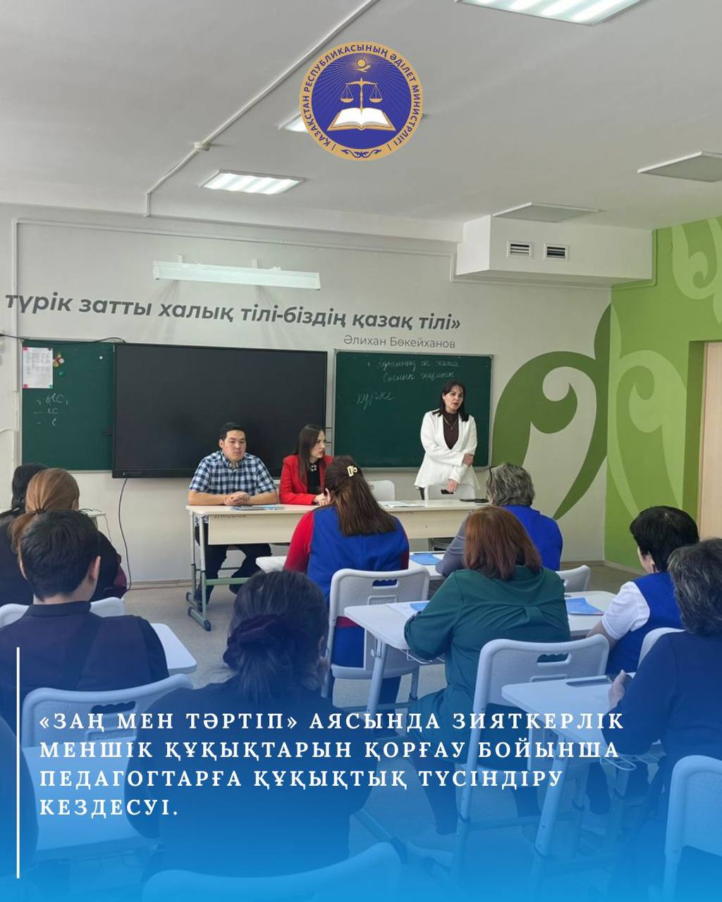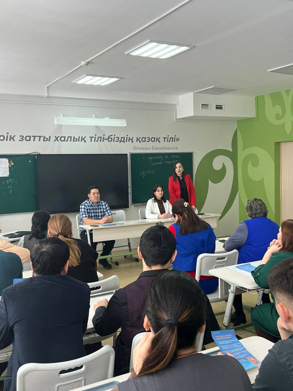 «Заң мен Тәртіп» идеологиясы аясында құқықтық түсіндіру жұмысын жалғастыра отырып, зияткерлік меншік құқығы бөлімінің басшысы Петропавл қаласының № 25 орта мектебінің педагогтарымен кездесуге қатысты.