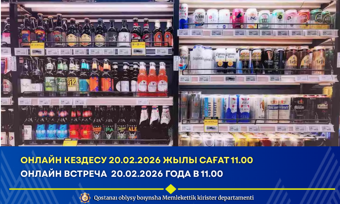 Қостанай облысы бойынша мемлекеттік кірістер департаменті сыра мен сыра сусындарын өткізу жөніндегі қызметті жүзеге асыратын бөлшек саудагерлерді 20.02.2026 жылы сағат 11.00-де онлайн-форматта өтетін тауарларды таңбалау және қадағалау ақпараттық жүйесінің бірыңғай операторымен түсіндіру кездесуіне шақырады.
