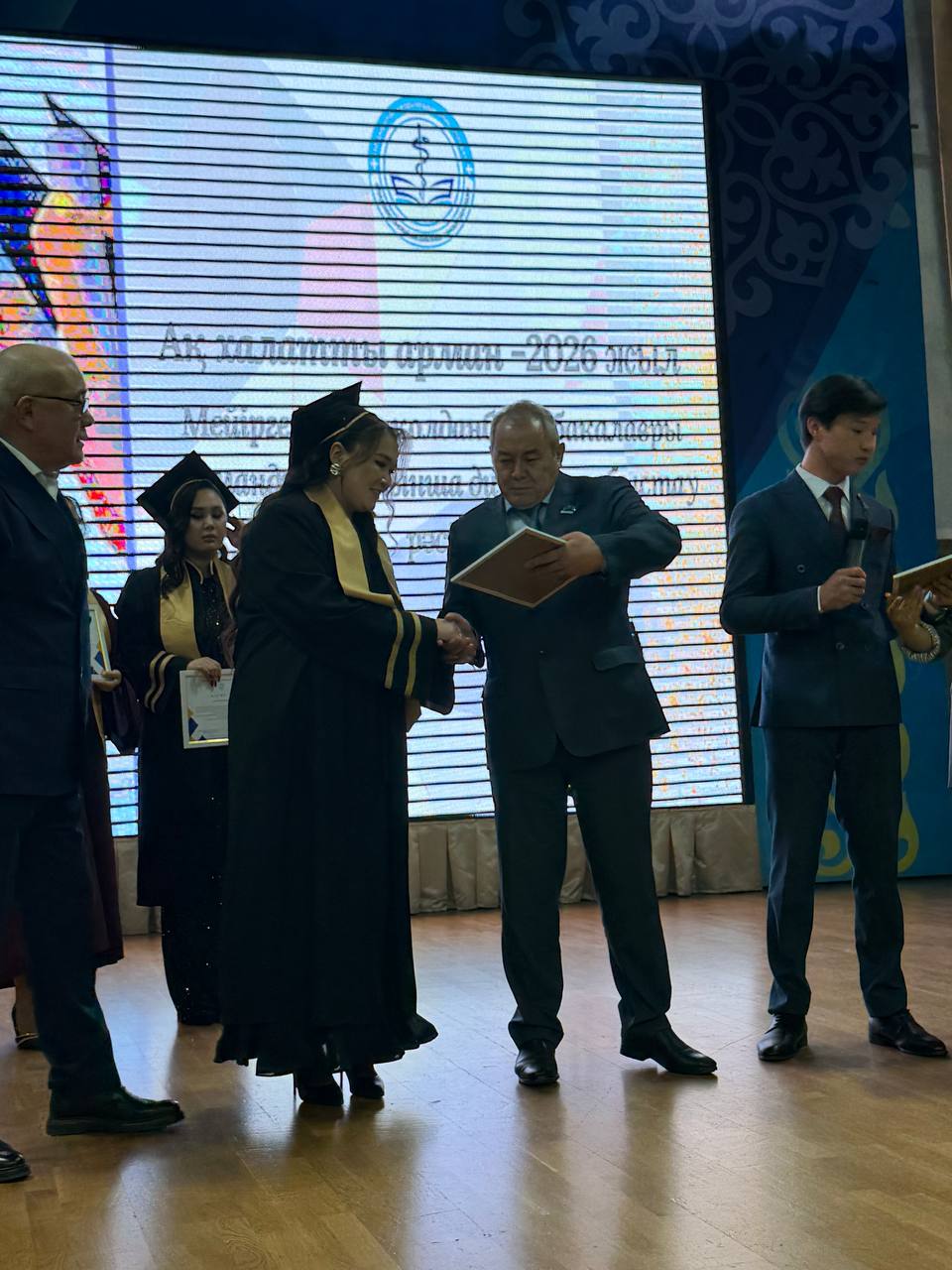 Талдықорған жоғары медициналық колледжінің «Мейіргер ісінің қолданбалы бакалавры» мамандығын тәмамдаған студенттеріне арналған диплом табыстау салтанатты рәсіміне Талдықорған қалалық мәслихатының төрағасы Темірболат Ахажан және №18 сайлау округінің депутаты, колледж директоры Серік Жансенгіров қатысты.