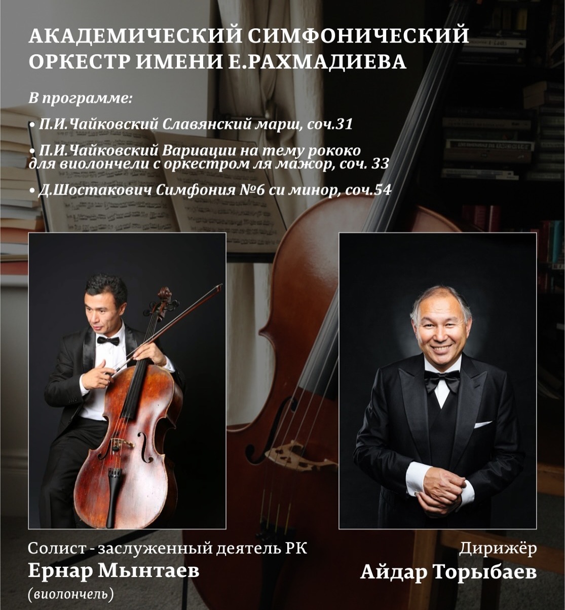 Виолончельші Ернар Мыңтаев Қарағандыда Еркеғали Рахмадиев атындағы оркестрмен бірге өнер көрсетеді
