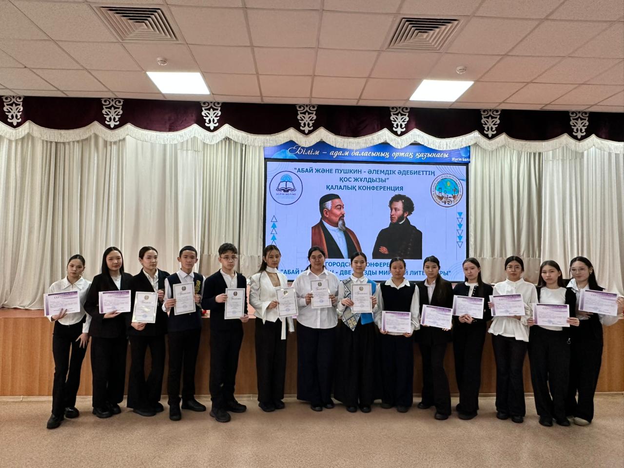 9-сынып оқушылары арасында «Абай и Пушкин – две звезды мировой литературы» тақырыбында қалалық конференция өтті.