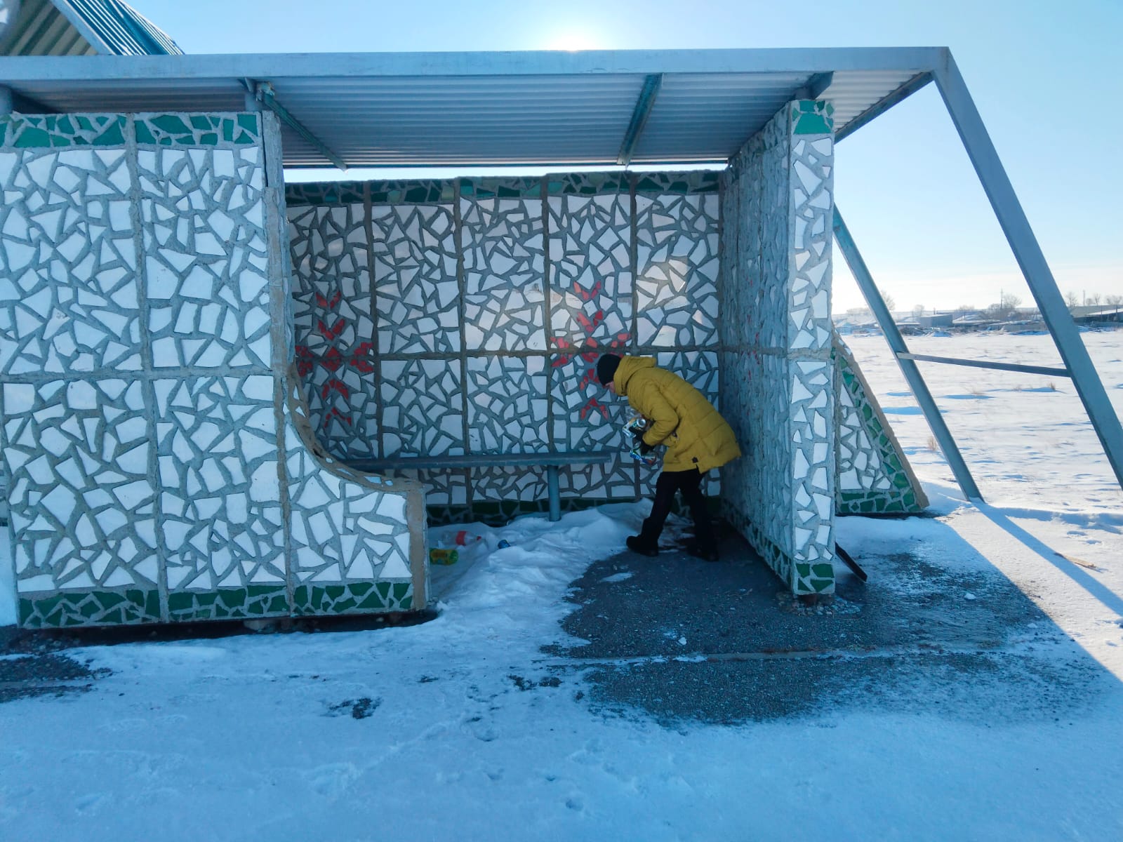 Автобус аялдамасында қоқыс тазалау жұмыстары жүргізілді.