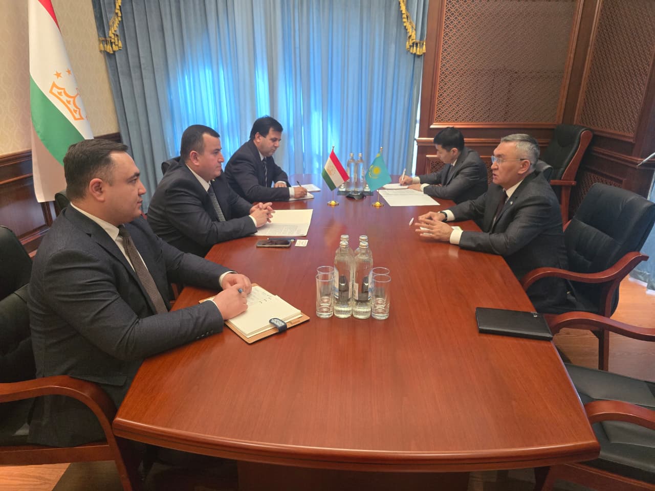 Душанбе, 2026 жылғы 23 ақпан – Қазақстанның Тәжікстандағы Елшісі Уәлихан Төрехановтың Тәжікстан Республикасының Экономикалық даму және сауда министрі Абдурахмон Абдурахмонзодамен кездесуі өтті.