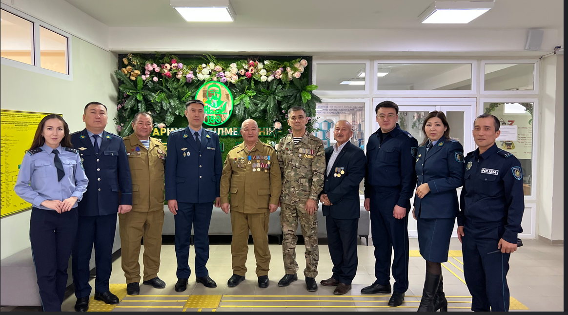 Сонымен қатар, шара барысында полиция полковнигі Мұқан Алмас Мешітбайұлы және Ауған соғысының ардагерлері ішкі істер органдарының ардагері Бокушов Корабайдың (04.07.1956 ж.т.) есіміне арнайы ашылған кабинетке барып, оның жарқын бейнесін еске алды. Ардагердің елге сіңірген еңбегі мен өнегелі ғұмыры туралы жылы пікірлер айтылып, жас ұрпаққа үлгі ретінде насихатталды.