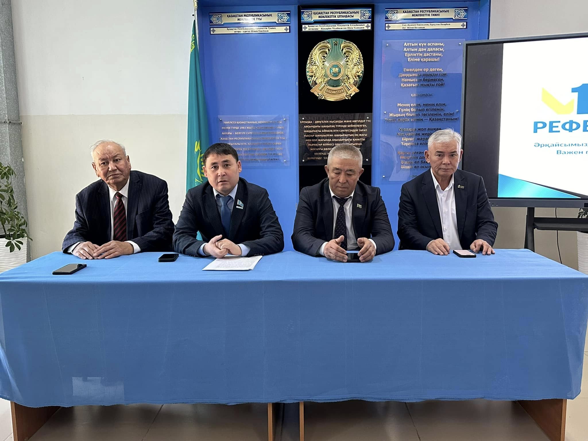 Сағадат Нұрмағамбетов атындағы жалпы білім беретін мектеп ғимаратында «Әділетті және Прогрессивті Қазақстанның Халықтық Конституциясы үшін!» атты коалицияның аудандық өкілдері тағы бір маңызды кездесу өткізіп, алдағы конституциялық өзгерістер төңірегінде кең көлемді түсіндіру жұмыстары жүргізілді.