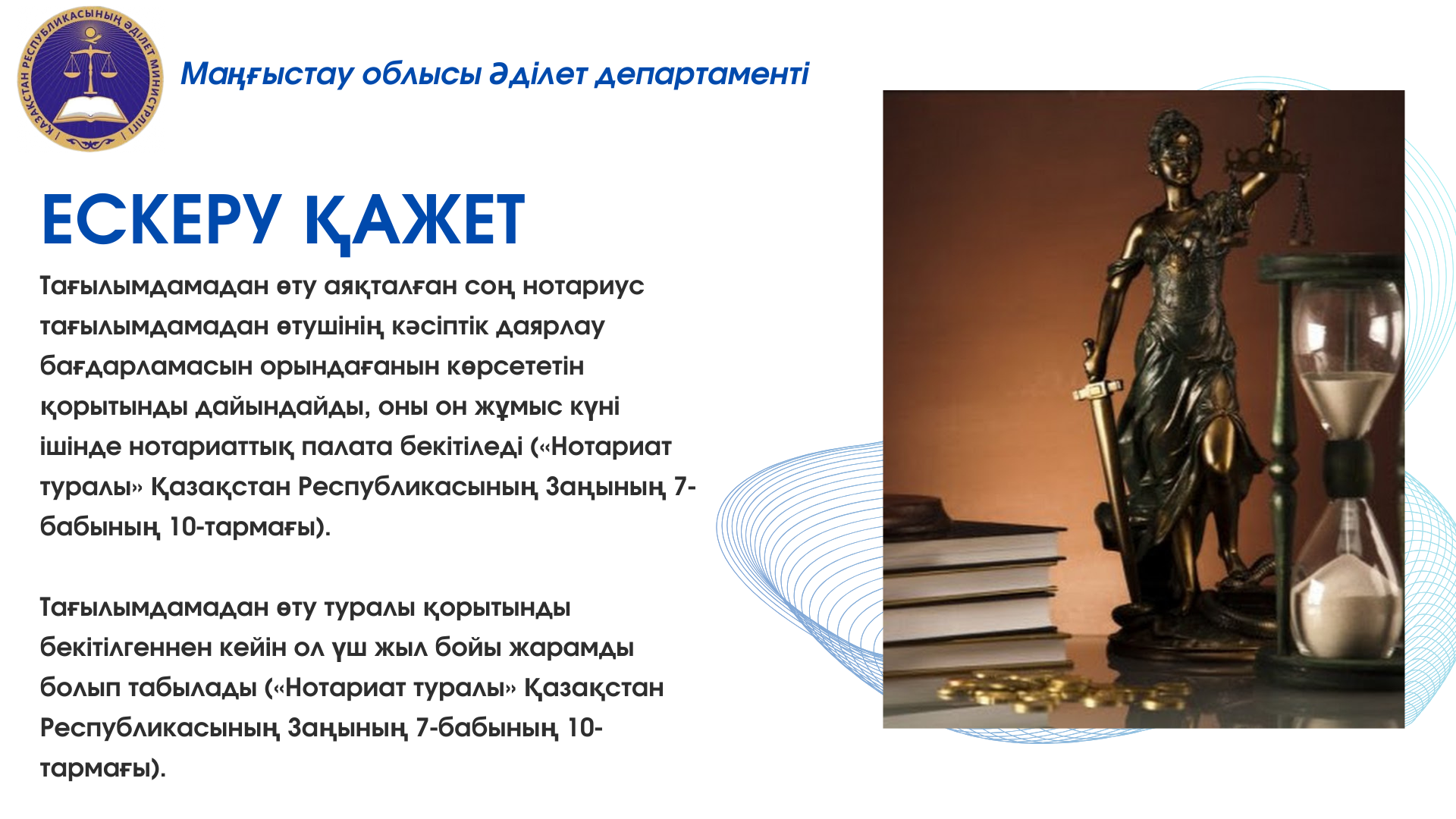 📌 Нотариаттық қызметпен айналысу құқығына үміткерлерді аттестаттау тәртібі