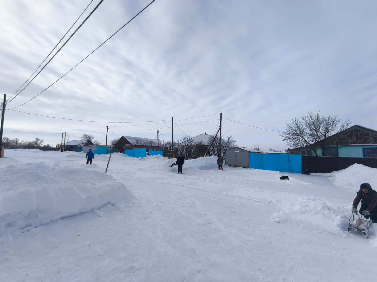 Аула иелерімен бораннан кейінгі өз аулаларын тазалау сәті.