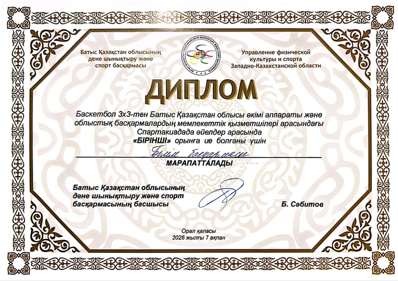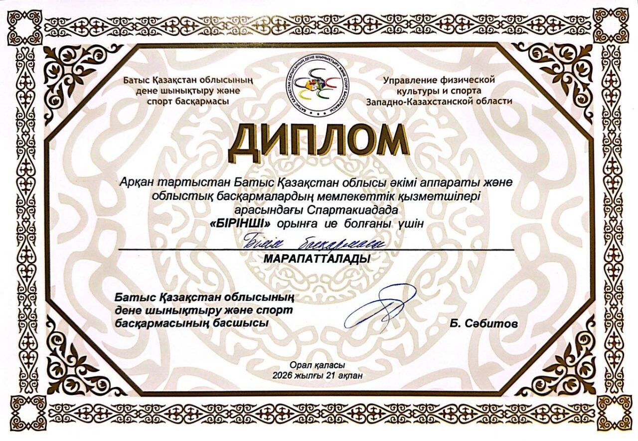 БҚО әкімі аппараты мен облыстық басқармалар қызметкерлері арасындағы спартакиада өз мәресіне жетті. Батыс Қазақстан облысы білім басқармасы командасы биыл алғаш рет қатысып, 23 басқарма арасынан 7-орынға тұрақтады.