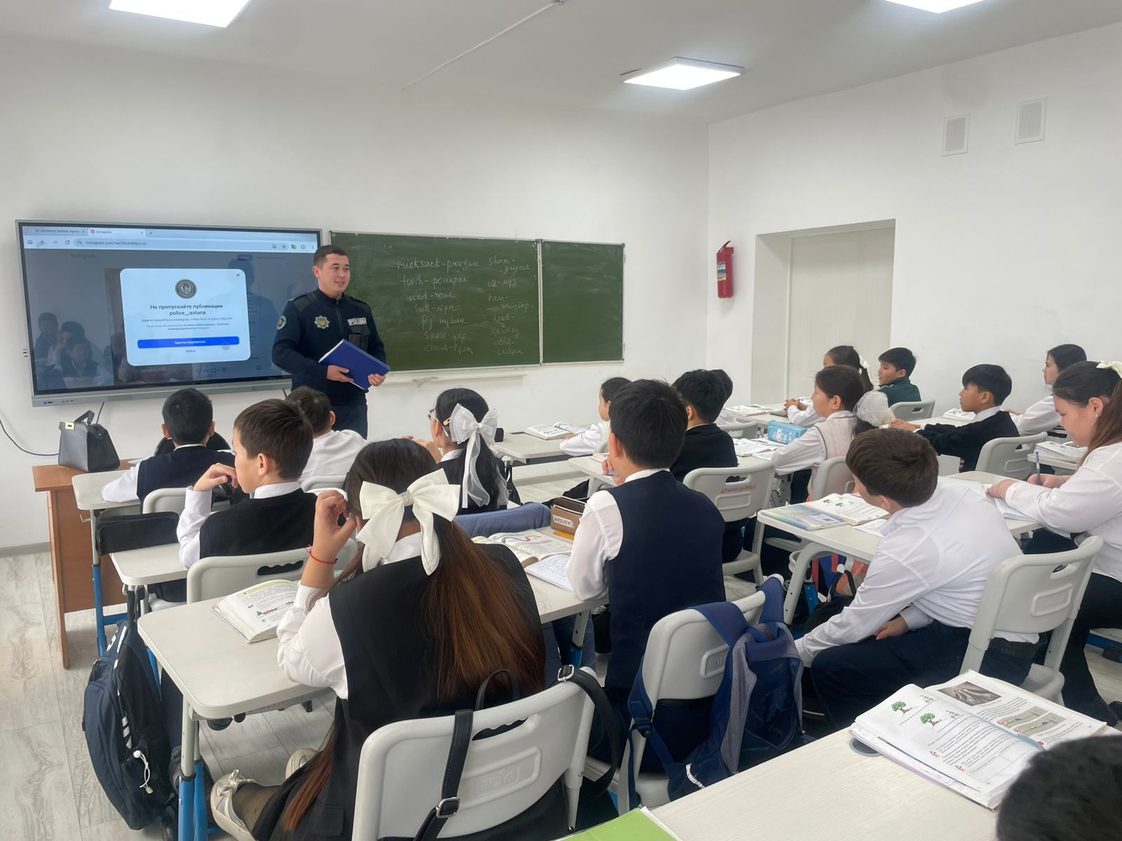 Сонымен қатар, іс-шара барысында интернет-алаяқтықтың түрлері мен салдары, жеке мәліметтерді қорғау, күмәнді сілтемелерге өтпеу және бейтаныс адамдармен жеке ақпарат алмасудан сақ болу керектігі түсіндірілді.