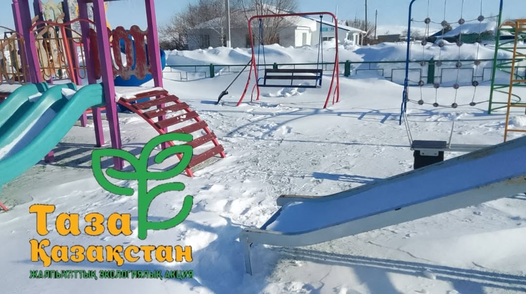 Балалар алаңын қардан тазартып, ауыл орталығын ретке келтірдік.