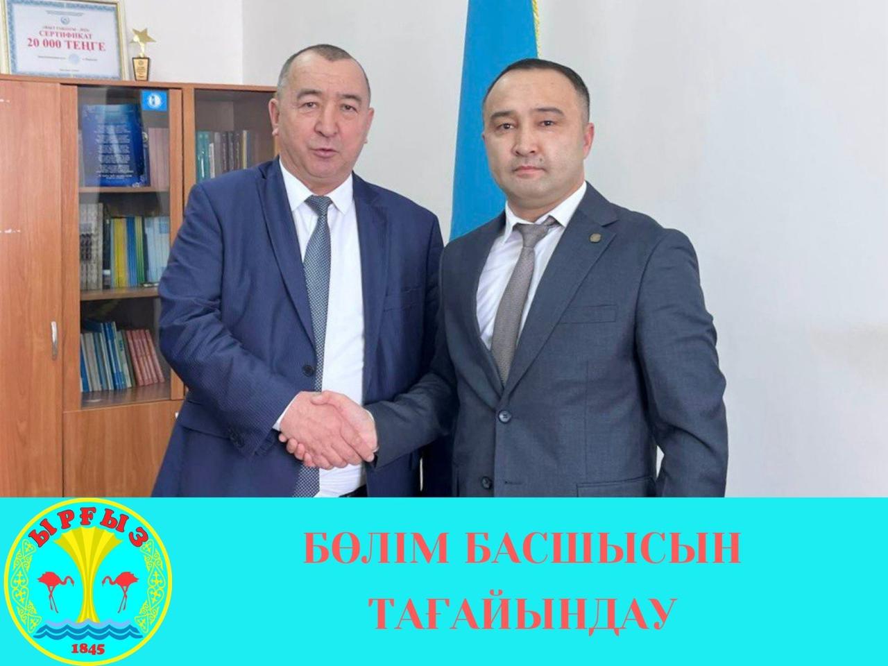 Ырғыз аудандық мәдениет, тілдерді дамыту, денешынықтыру және спорт бөлімінің басшысы лауазымына Қожамбердиев Кенжебек Қуандықұлы 2026 жылдың 19 ақпанынан бастап тағайындалды.