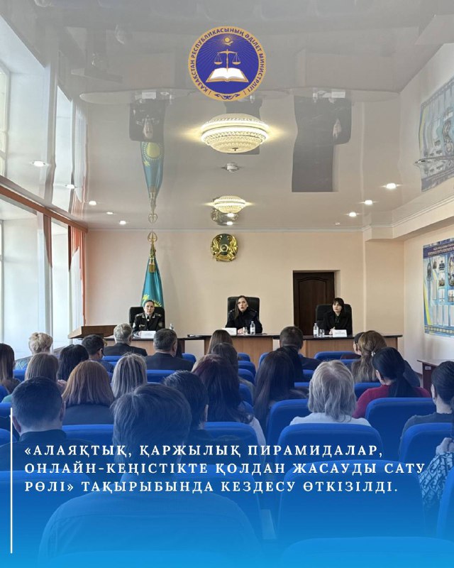 «Заң мен Тәртіп» идеологиясы шеңберінде әділет департаментінің қызметкерлерімен және өзге де мемлекеттік органдармен «Алаяқтық, қаржылық пирамидалар, онлайн-кеңістікте қолдан жасауды сату рөлі» тақырыбында кездесу өткізілді. Баяндамалармен М.И.Балацкая, СҚО полиция департаментінің киберқылмысқа қарсы іс-қимыл басқармасының аға жедел уәкілі, О.Ю.Синякина, СҚО бойынша экономикалық тергеу департаментінің ұйымдастыру-бақылау басқармасының аса маңызды істер жөніндегі тергеушісі сөз сөйледі.