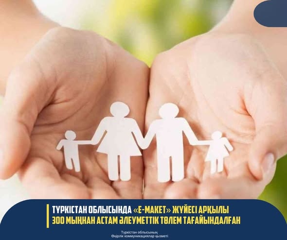 ТҮРКІСТАН ОБЛЫСЫНДА «Е-МАКЕТ» ЖҮЙЕСІ АРҚЫЛЫ 300 МЫҢНАН АСТАМ ӘЛЕУМЕТТІК ТӨЛЕМ ТАҒАЙЫНДАЛҒАН