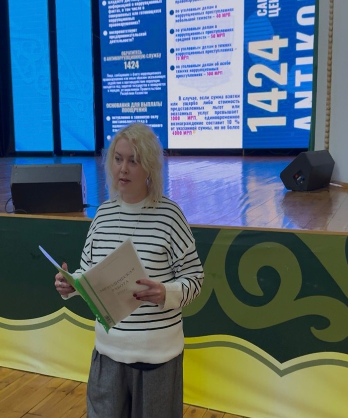 Аталған іс-шара квазимемлекеттік сектор қызметкерлерінің құқықтық сауаттылығын жүйелі түрде арттыру және ұжымда сыбайлас жемқорлыққа қарсы орнықты дүниетанымды қалыптастыру мақсатында өткізілетін тоқсан сайынғы түсіндіру-оқыту сессиялары циклі аясында ұйымдастырылды.