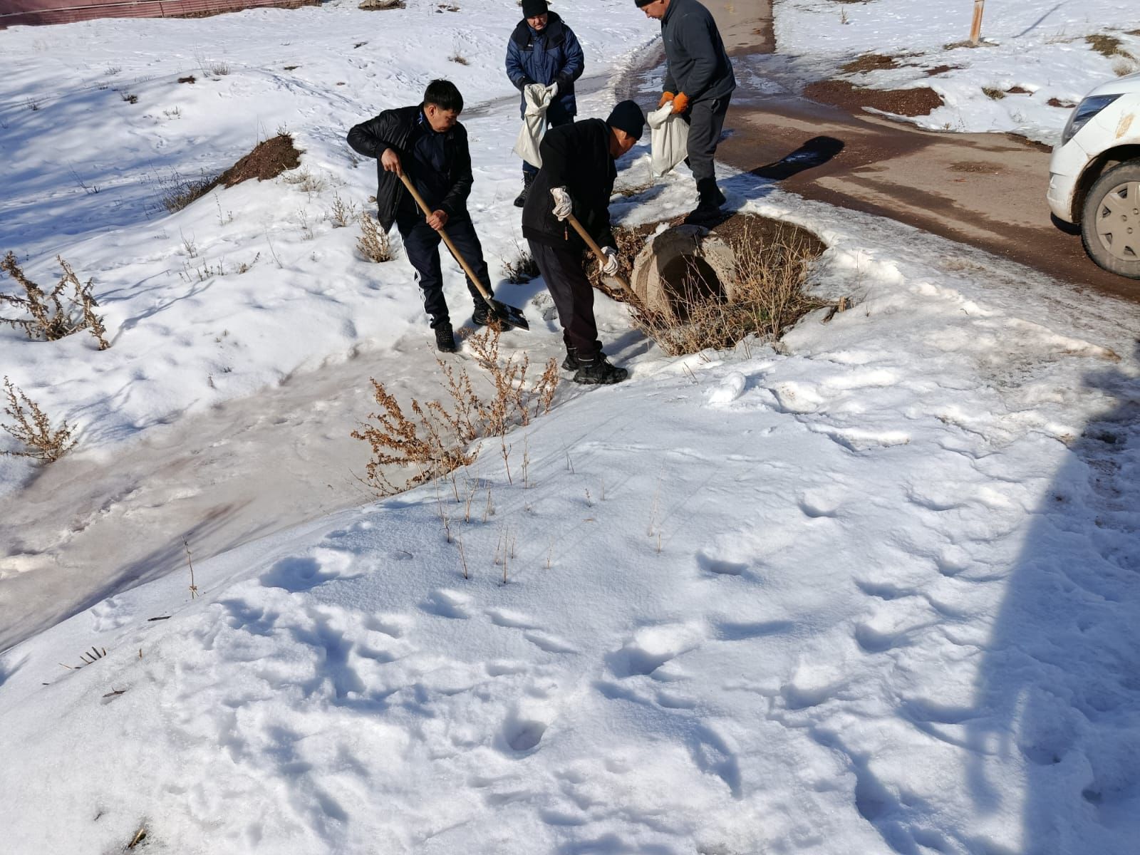 В частности, произведена очистка арычной системы, водоотводных каналов и труб от снега, льда и бытового мусора. Для обеспечения беспрепятственного прохождения талых вод проведена проверка и очистка водопропускных сооружений, в том числе подмостовых переходов и труб. Также организован вывоз снега с участков, где наблюдалось его наибольшее скопление.