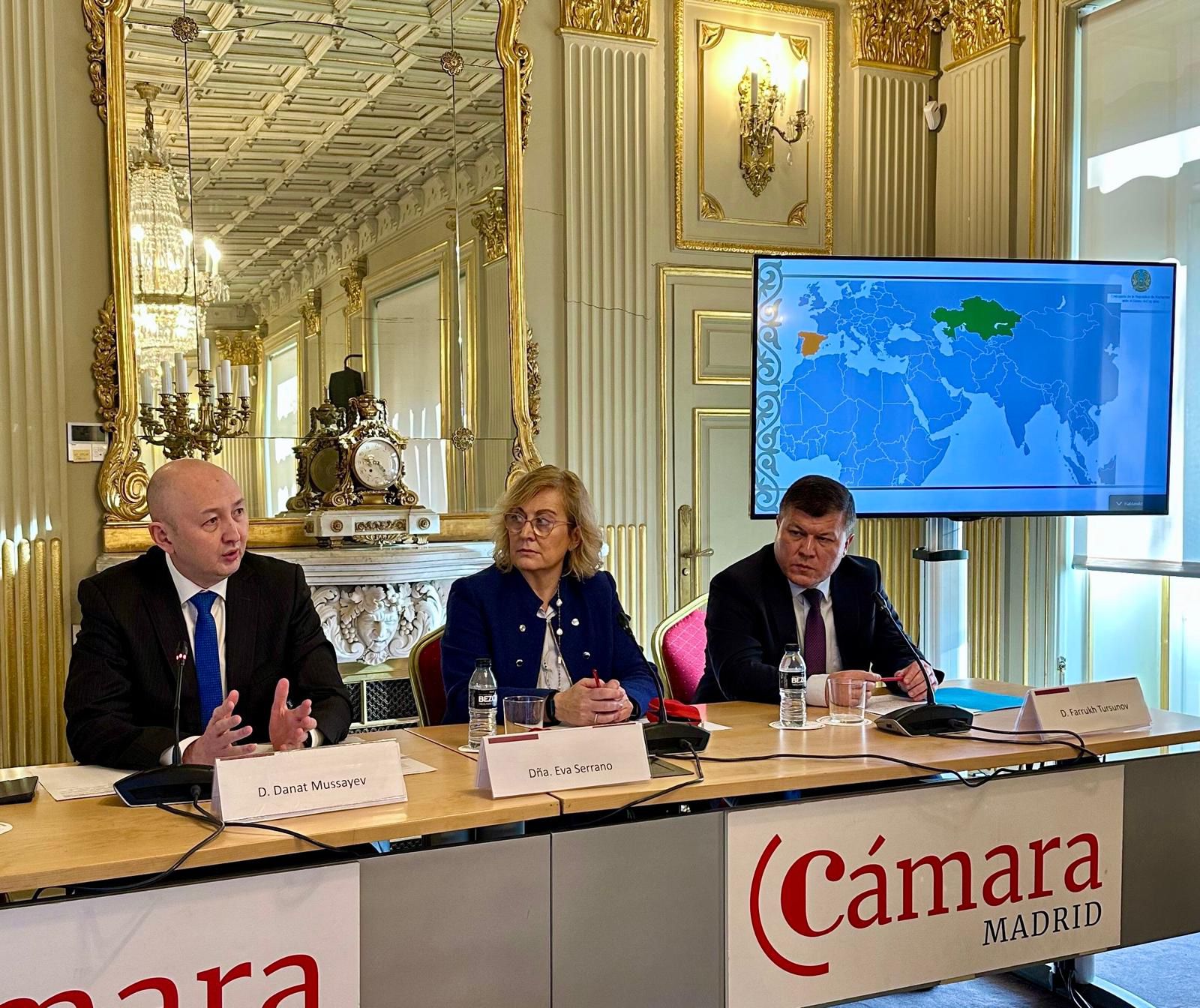 Мадрид, 2026 жылғы 24 ақпан – Қазақстанның Испаниядағы Елшісі Данат Мұсаев Орталық Азия елдерінің экономикалық әлеуетіне арналған халықаралық конференцияда сөз сөйледі.