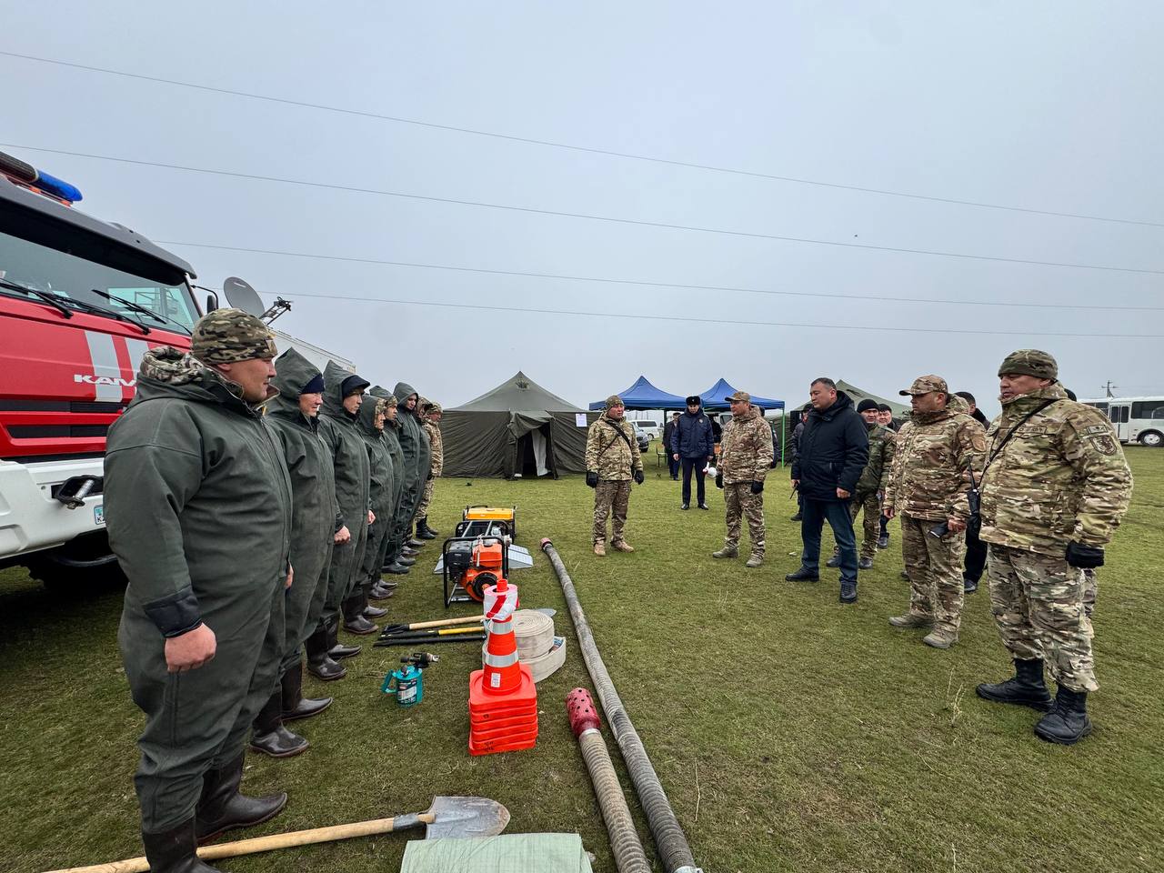 «Көктем–2026» республикалық командалық-штабтық оқу-жаттығуы барысында Жамбыл облысы Т.Рысқұлов ауданының азаматтық қорғау қызметтері су тасқыны қаупі туындаған жағдайда әрекет ету тәртібін пысықтады. Ойламаға сәйкес Шөнгер өзеніндегі су деңгейінің көтерілуіне байланысты елді мекенді су басу қаупі туындап, тұрғындарды хабардар ету, эвакуациялау және қауіпсіз аймаққа орналастыру шаралары ұйымдастырылды. Құтқарушылар шартты зардап шеккен адамды эвакуациялап, алғашқы медициналық көмек көрсету алгоритмін орындады. Сонымен қатар су айдау жұмыстары жүргізіліп, бөгеттерді нығайту, ауыз су сапасын бақылау және малды қауіпсіз аймаққа көшіру шаралары атқарылды. Оқу-жаттығу азаматтық қорғау қызметтерінің дайындығын тексеріп, халықтың қауіпсіздігін қамтамасыз етуге бағытталды.