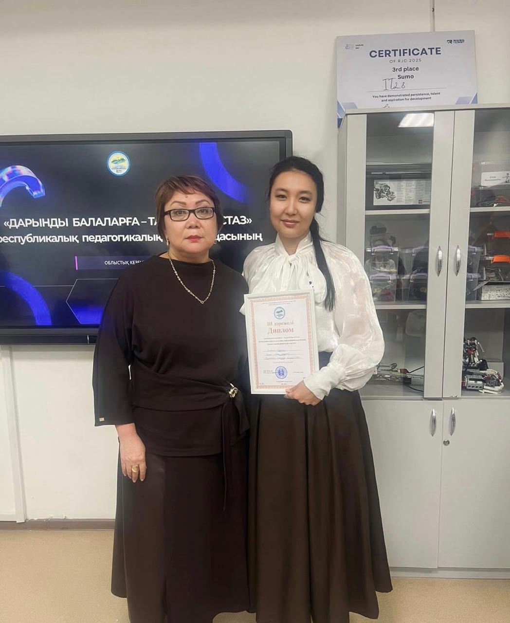 Жас педагог қызметкерлердің шығармашылық әлеуетін және өзін-өзі дамыту үшін жағдай жасау, білім беру жүйесін жетілдіруге жас мұғалімдердің белсенді кәсіби көзқарасын қалыптастыру мақсатында “Дарынды балаға – талантты ұстаз” республикалық педагогикалық олимпиадасының облыстық кезеңінде Кәлпе орта мектебінің педагог-психологы Базарбаева Еркежан Жолдасовна жүлделі 3-орынды иеленді. Жас педагогіміздің облыс көлеміндегі нәтижелі жетістігі құтты болсын!