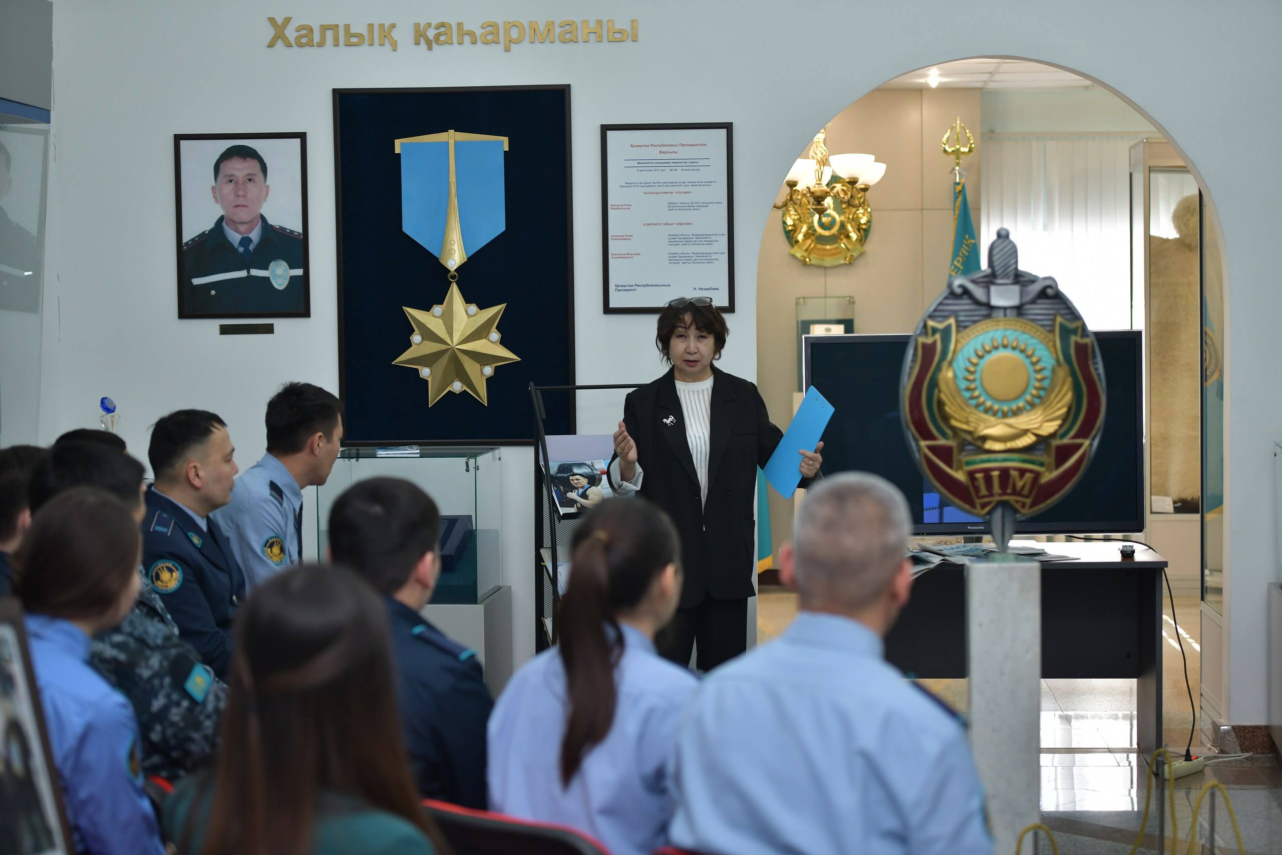 Кездесу алдында жас қызметкерлерге «Бүгінгі күн – ертеңгі тарих» қағидаты негізінде мұражай экспонаттары таныстырылып, ішкі істер органдарының қалыптасу және даму жолы туралы кеңінен мағлұмат берілді.