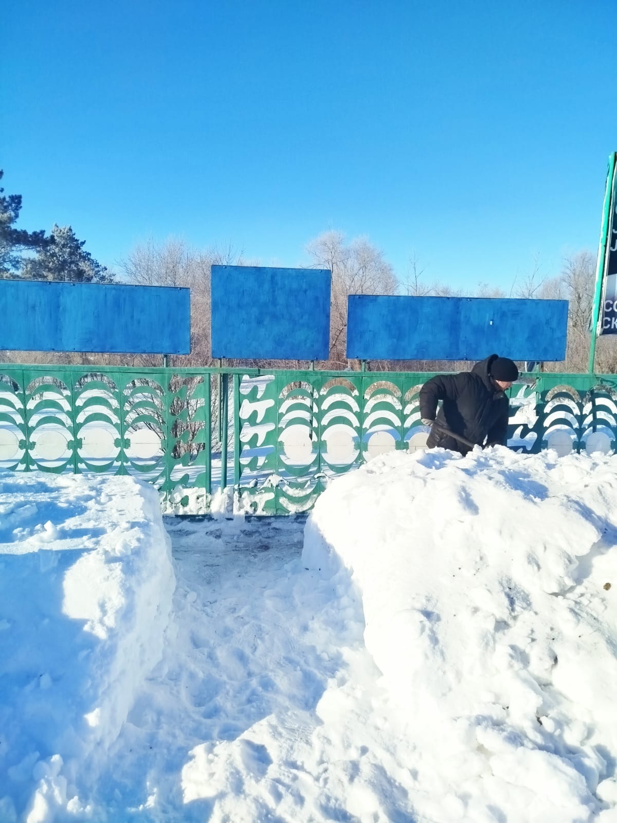 Қоғамдық қызметкерлер әкімдік аумағында қар жинады