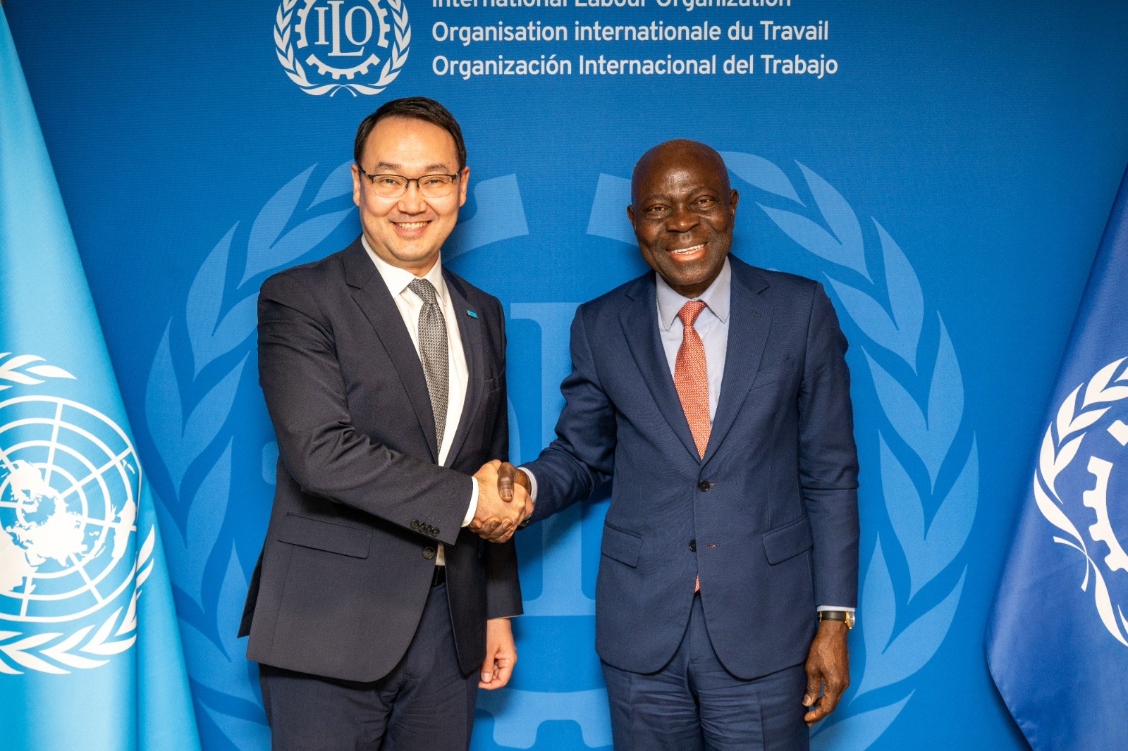 Халықаралық еңбек ұйымының (ХЕҰ) Бас директоры Жильбер Унгбомен кездесу «лайықты еңбек» жөніндегі бірлескен «жол картасын» іске асыру мәселелеріне арналды. Тараптар еңбек құқықтарын қорғау және халықаралық еңбек стандарттарын ұлттық заңнамада бекіту бағытындағы оң серпінді ерекше көрсетті. Қазақстан Әлеуметтік әділеттілік үшін Жаһандық коалицияны қолдайтынын растады және Орталық Азияда ХЕҰ өңірлік бағдарламаларын кеңейтуге мүдделілік танытты.