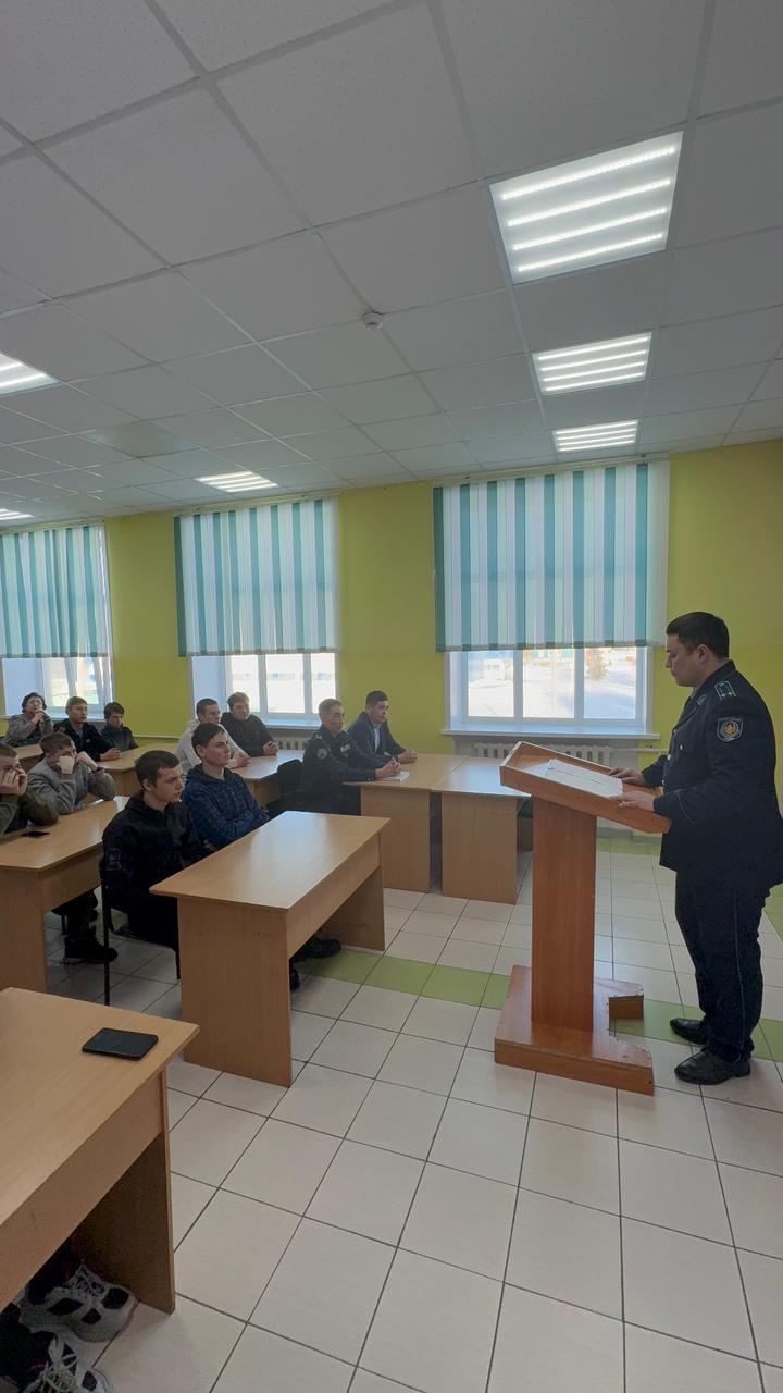 СҚО ПД Есіл ауданы полиция бөлімінің бастығы, полиция подполковнигі Руслан Мұхамбетжанов Петров аграрлық-техникалық колледжінің студенттерімен және Т. С. Позолотин атындағы №1 Явленка орта мектебінің оқушыларымен кездесті.