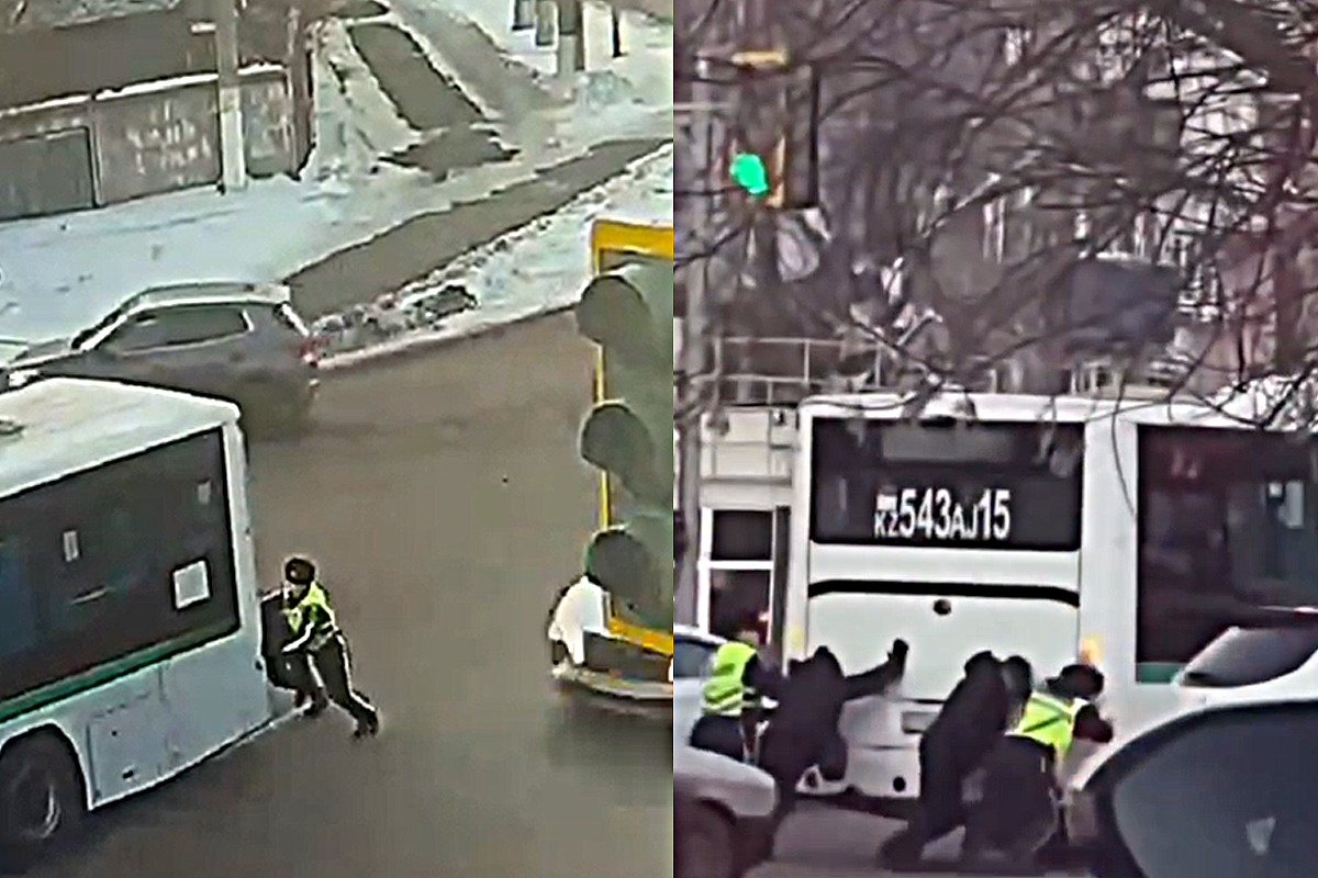 19 ақпан күні таңертең көше-жол желісінің осы қарқынды бөлігінде жанармайдың қатып қалуына байланысты қалалық бағыттардың біріне қызмет көрсететін автобус тоқтап қалды. Соның салдарынан жолда кептеліс пайда болды. Бұл жағдайды патрульдеу бағытына бет алған қалалық патрульдік полиция батальонының аға инспекторлары, полиция капитандары Саян Тұрсұмбаев пен Әлім Маликов байқады. Олар қызметтік нұсқаулықтан кейін патрульдеу бағытына бара жатқан. Жол-көлік оқиғасының алдын алу үшін тәртіп сақшылары екі жүргізушімен бірге автобусты қиылыстан итеріп шығарды. Жол қауіпсіздігін қамтамасыз еткеннен кейін полицейлер қала көшелерін патрульдеуді жалғастырды, ал жолаушылар көлігіне арнайы техника көмекке келді.