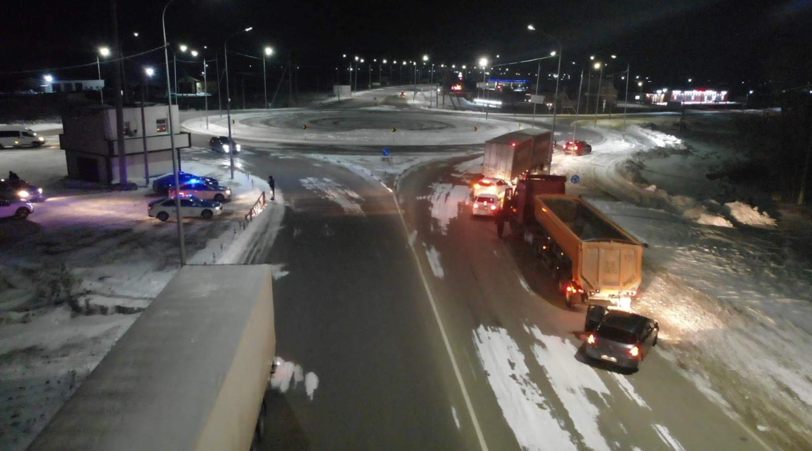 Жүйелілік пен жеке үлгі — профилактиканың негізі. Қалааралық тасжолдарда тек патрульдік экипаждар ғана емес, облыстық және аудандық бөлімшелердің басшылары да жұмыс істейді. Кеше кешкісін «Астана — Петропавл» автожолының Келлеровка ауылы маңындағы учаскесінде ауқымды акция өтті. Бұл бағытта қозғалыс қарқыны жоғары: мұнда DAF, Shacman және КАМАЗ маркалы ауыр жүк көліктері тәулік бойы транзитпен қатынайды. СҚО ПД әкімшілік полиция басқармасының бастығы Алтынбек Жамалиев, аудандық полиция бөлімінің бастығы Дәурен Ибраев және патрульдік полиция батальонының командирі Рүстем Испердинов ондаған жүргізушімен жеке кездесіп, түсіндіру жұмыстарын жүргізді. Негізгі талаптар — жылдамдық режимін қатаң сақтау, рөлде смартфон қолданбау және міндетті демалыс. Сондай-ақ полицейлер SMS-хабарламалардың маңызын еске салды: өңірдің солтүстігінде көктайғақ пен боран кез келген сәтте тосыннан туындауы мүмкін.