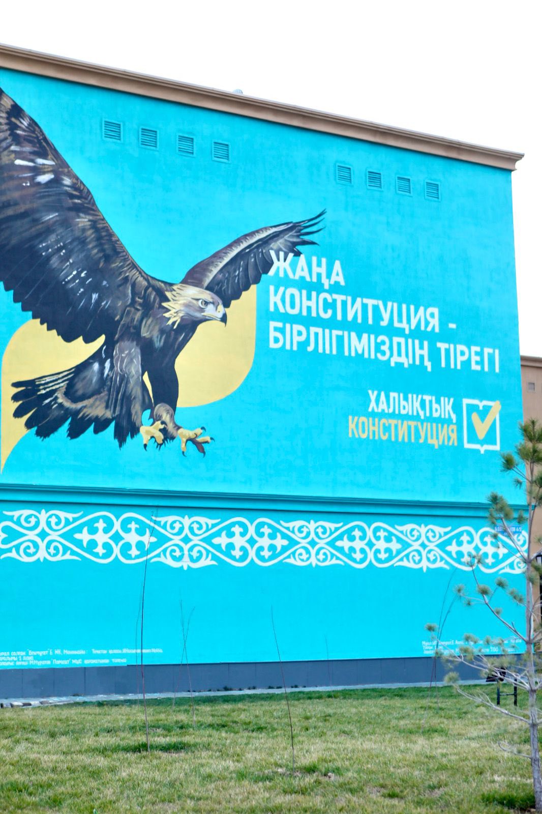 Түркістан қаласында Конституциялық реформаны қолдау мақсатында қоғамдық маңызы бар көркем жоба іске асырылды. Қаланың туристік аймақтарының бірі – «Керуен сарай» кешені аумағындағы тұрғын үйдің қасбетіне арнайы тематикалық мурал салынды.