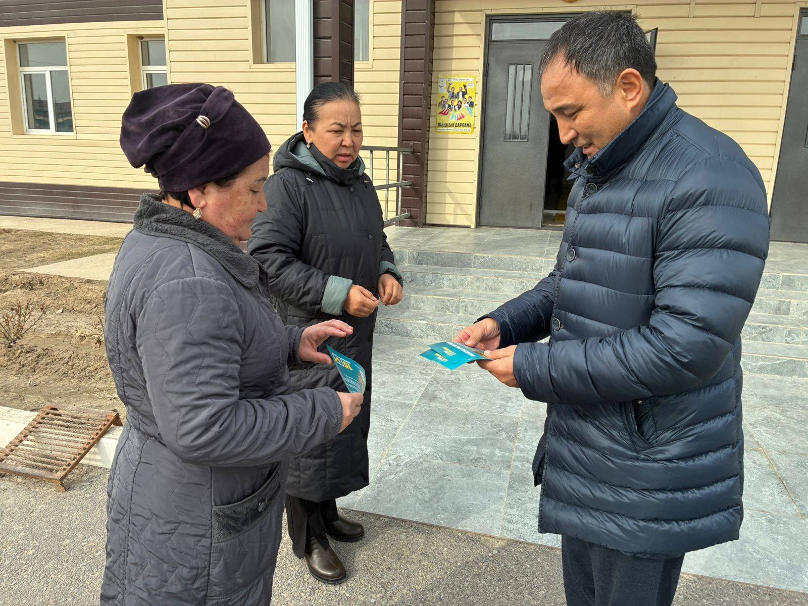 Акция барысында Арыс қалалық мәслихатының төрағасы, коалиция мүшесі Қайрат Төрегелдіұлы мен Арыс қалалық коалиция төрағасы Бақтығали Сәрсенбекұлы ауыл тұрғындарымен жүздесіп, алдағы референдумның мәні мен маңызын түсіндірді.                                                Референдум – әр азаматтың ел болашағына қатысты маңызды шешім қабылдауына мүмкіндік беретін демократиялық үдеріс екенін атап өтіп,  тұрғындарды алдағы жалпыхалықтық таңдау жасауға белсенді қатысуға шақырды.