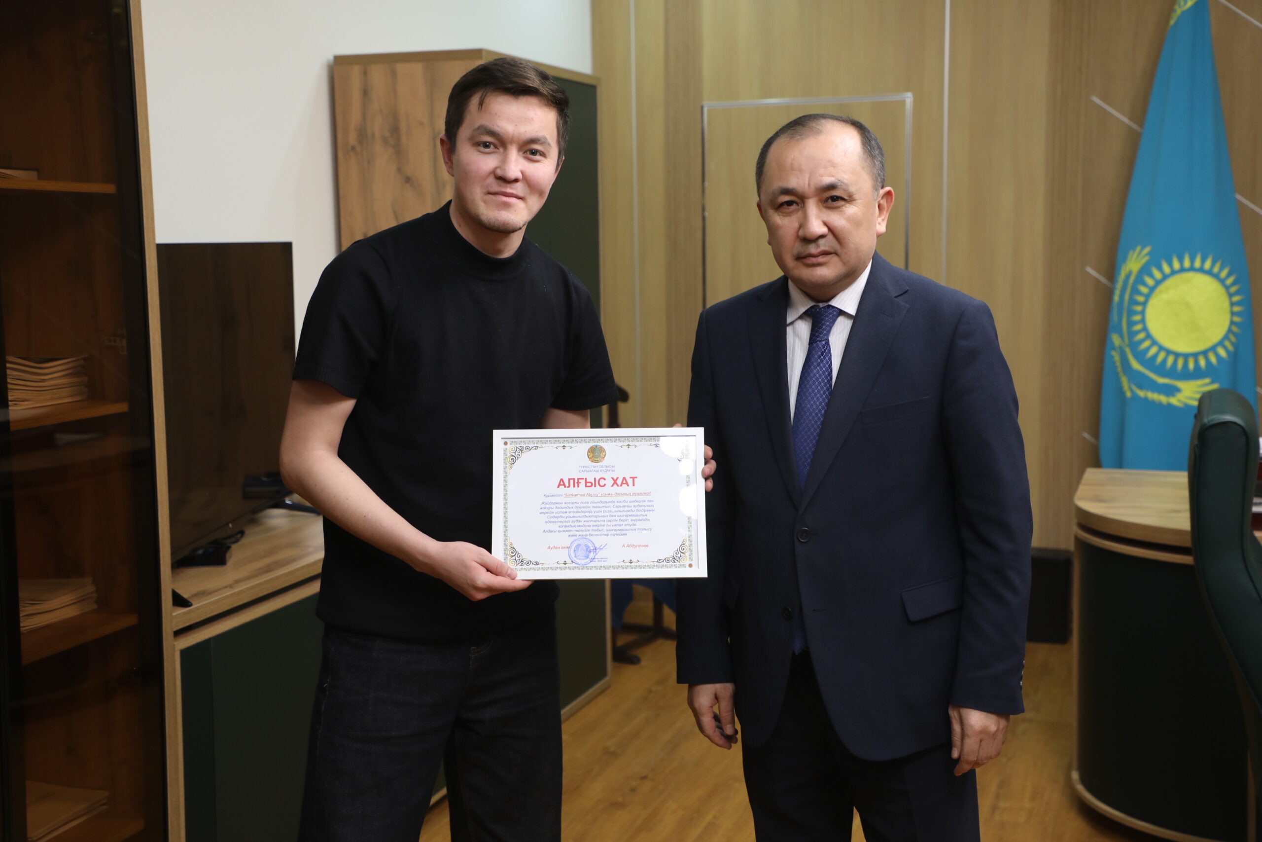 Сарыағаш ауданының әкімі Арман Абдуллаев «Sunkarmed Abyroy» командасының мүшелерін арнайы қабылдап, жарқын жеңістерімен құттықтады. Аудан әкімі өнерлі жастарға әрқашан қолдау көрсетуге дайын екенін жеткізді.
