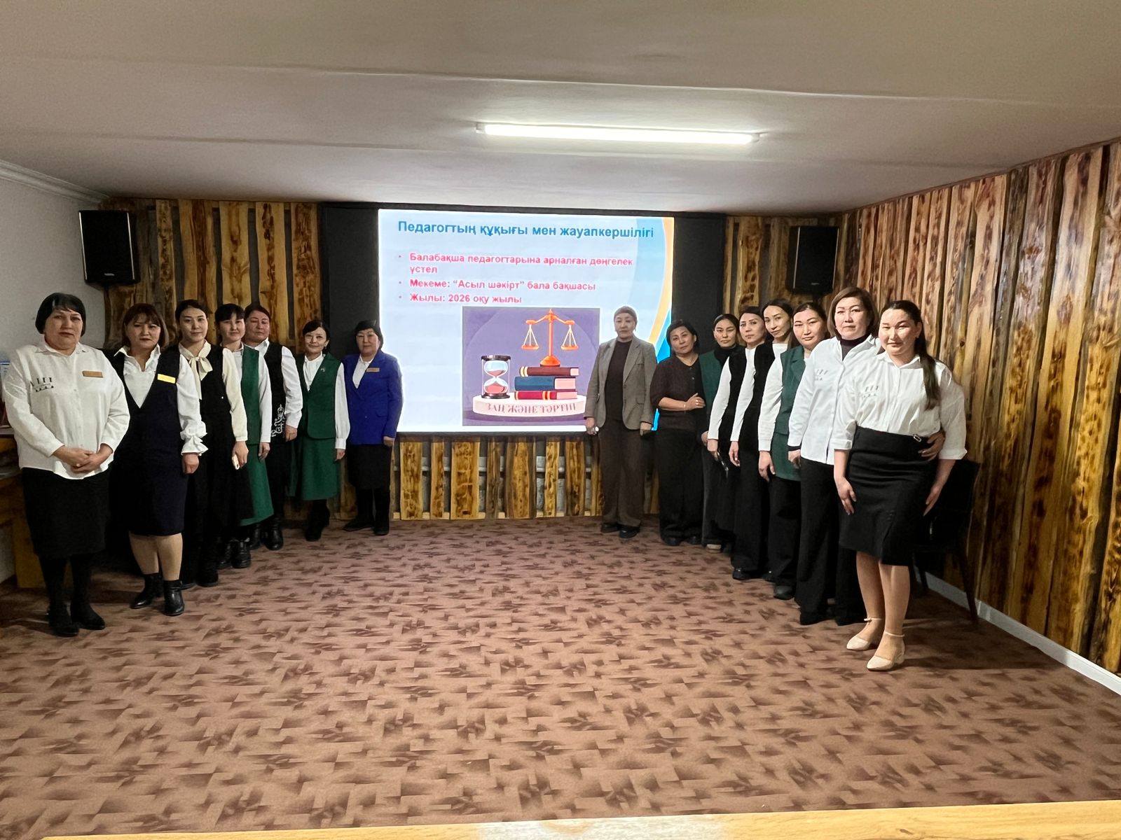 Аудандық білім бөлімі әдіскері Қ. Рахимбаева қорытынды сөзінде мектепке дейінгі мекемелерде педагогтардың әдепті, тәртіпті, өз құқығын білетін маман болуы маңызды екенін атап өтті.