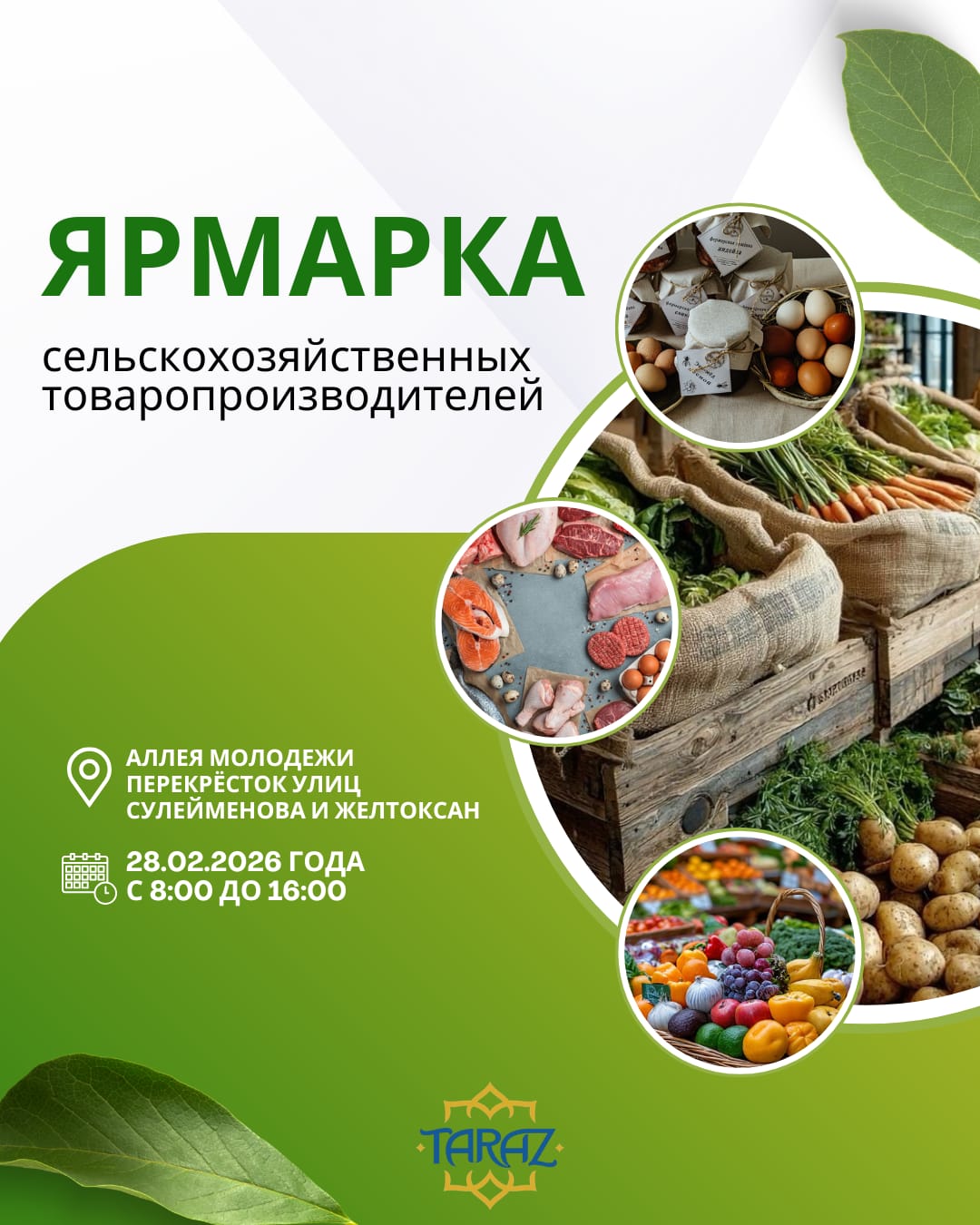 Ертең, 28 ақпанда Тараз қаласында ауыл шаруашылығы өнімдерінің жәрмеңкесі өтеді.