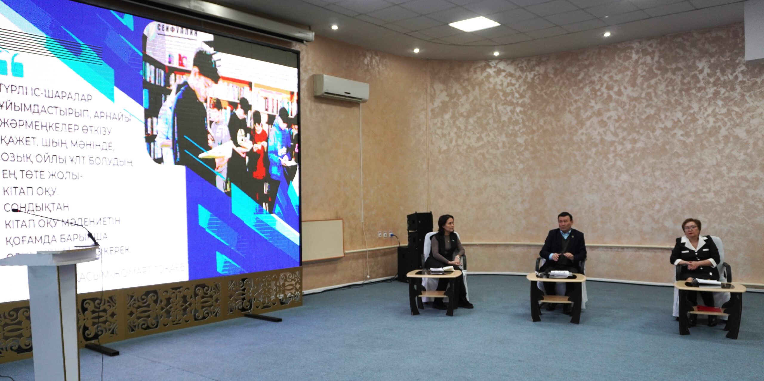 26 ақпан күні Цифрландыру және жасанды интеллект жылы аясында «Достар» мәдениет сарайында «Салтанат сарайы» жанындағы қалалық үлгілі кітапхананың ұйымдастыруымен «Кітап оқу мәдениеті, жасанды интеллект және цифрландыру» тақырыбында дөңгелек үстел өтті.