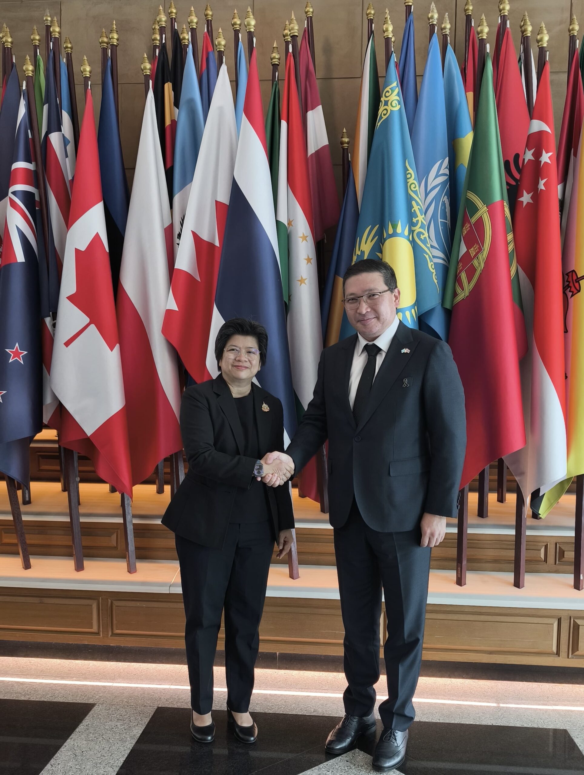 Бангкок, 2026 жылғы 26 ақпан – Қазақстанның Таиландтағы Елшісі Марғұлан Баймұхан Таиланд Сыртқы істер министрлігінің Оңтүстік Азия, Таяу Шығыс және Африка істері жөніндегі департаментінің Бас директоры Ураса Монгколнавинмен кездесу өткізді.