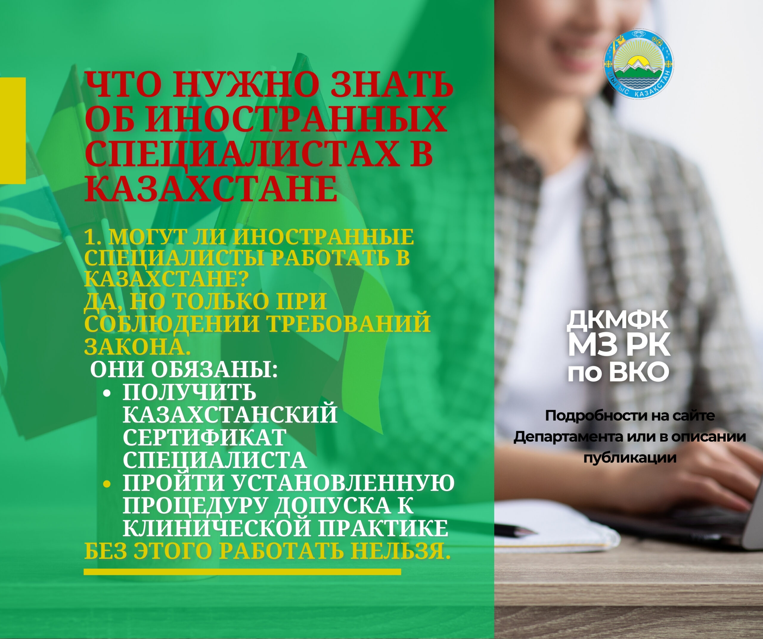 «Халық денсаулығы және денсаулық сақтау жүйесі туралы» Қазақстан Республикасының Кодексіне сәйкес шетелдік мамандар Қазақстан Республикасының денсаулық сақтау саласындағы маманының тиісті сертификаты болған кезде және клиникалық практикаға жіберудің белгіленген тәртібі сақталған кезде ғана медициналық көмек көрсете алады.