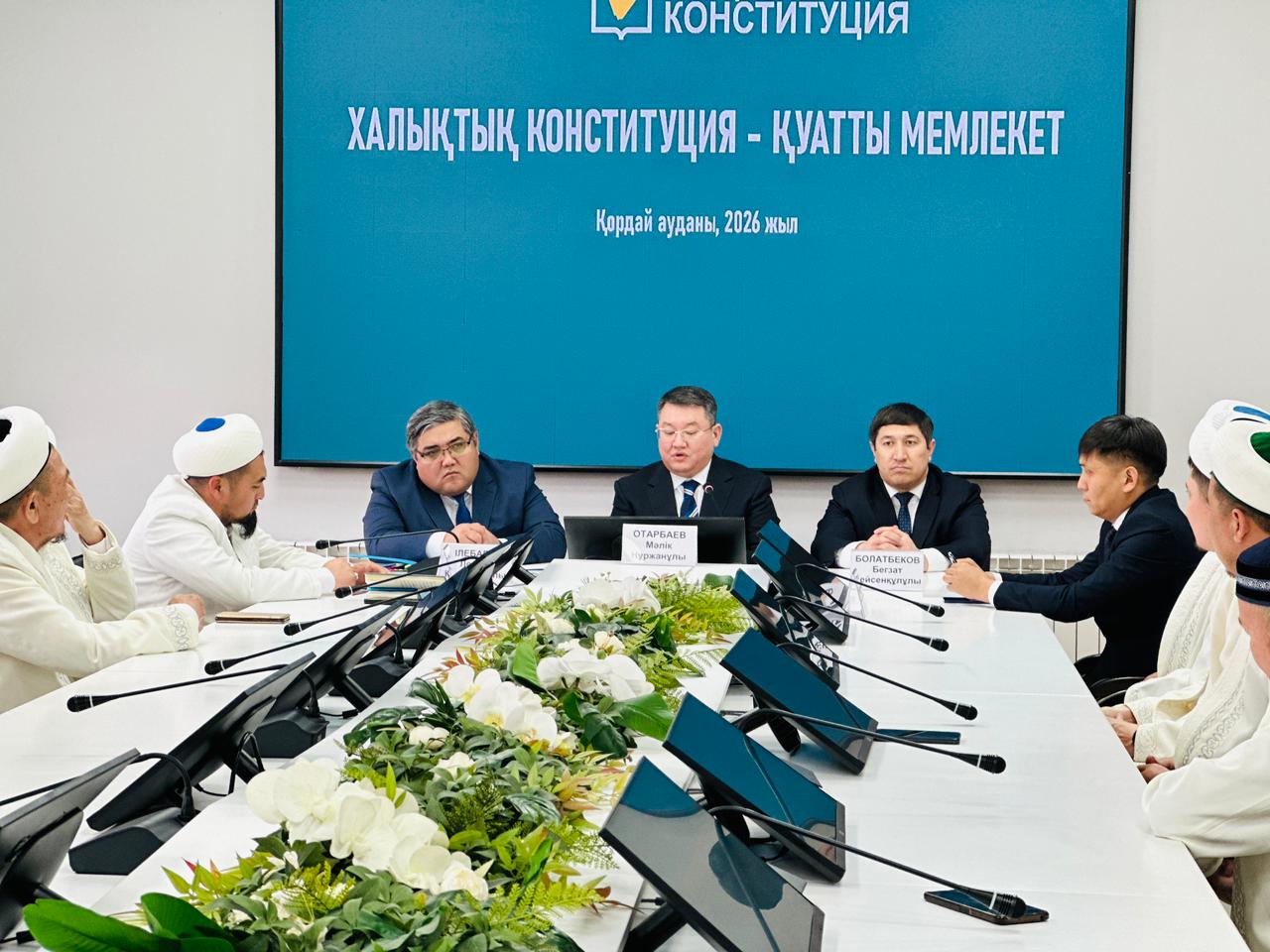 Шара Қордай ауданының мемлекеттік архивінің мәжіліс залында жалғасты. Мұнда ҚР Президентінің кеңесшісі аудандық мешіт имамдарымен кездесіп, референдумның мән-маңызы жөнінде пікір алмасты. Алғашқы сөз Қордай ауданының бас имамы Азамат Берікұлына берілді. Бас имам өз сөзінде ел бірлігі мен тұрақтылығының маңызын атап өтіп, қоғамдағы татулықты сақтауда рухани құндылықтардың орны ерекше екенін айтты.