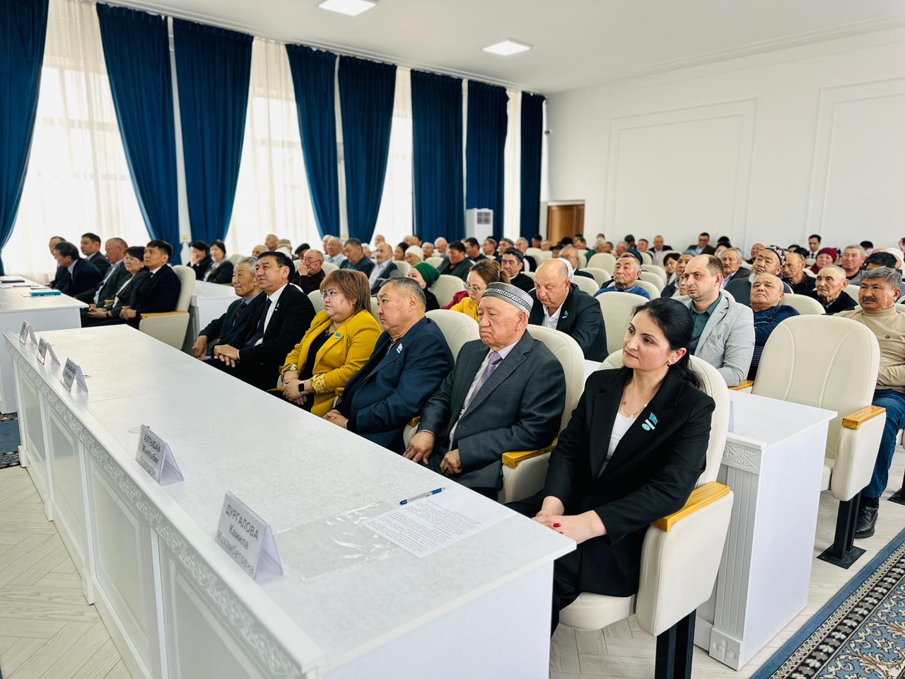 Жиын модераторы, Жамбыл облысы әкімі аппаратының басшысы Лесбек Ілебаев еліміздің саяси жүйесін жетілдіру бағытында жүргізіліп жатқан реформаларға тоқталды. Ол референдумның стратегиялық мәнін, қоғамдық келісімді нығайтудағы рөлін және саяси жаңғыру үдерісіндегі орнын атап өтті. Жиынға аудан әкімі Бегзат Болатбеков қатысты.