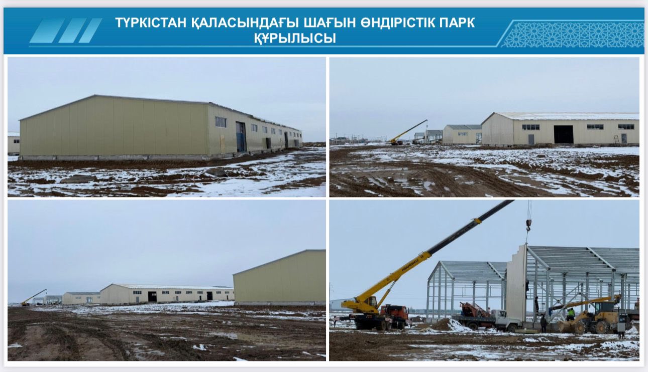 Түркістан облысы аумағындағы барлық аудандар мен қалаларда шағын өндірістік парктер құрылып, өндірістік ғимараттардың құрылысы қарқынды жүргізіліп жатыр. Жалпы, облыс көлемінде 214,3 гектар аумаққа 25 шағын өндірістік алаң құрылуда. Бұл алаңдарда 258 өндірістік ғимарат бой көтеріп, 251 жоба іске қосылмақ. Нәтижесінде, 5218 жаңа жұмыс орнын құру көзделуде.