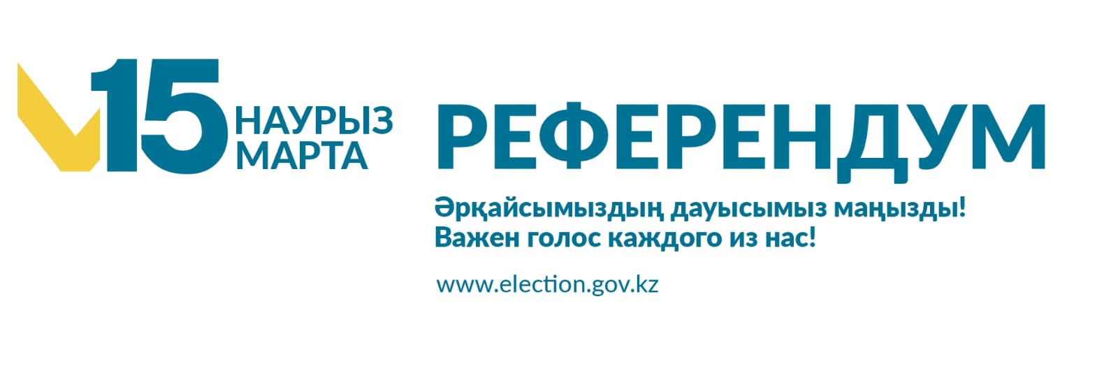 2026 жылдың 15 наурызында «Жобасы бұқаралық ақпарат құралдарында 2026 жылғы 12 ақпанда жарияланған Қазақстан Республикасының жаңа Конституциясын қабылдайсыз ба?» деген сауал бойынша республикалық референдум өтеді. Референдумда әрбір қазақстандық жеке дауыс береді. Бюллетень жеке басын куәландыратын құжатты көрсеткен кезде референдумда дауыс беруге құқылы азаматтар тізімі негізінде беріледі. Содан кейін Сіз бюллетеньді алғаныңыз туралы тізімге қол қоясыз. Бюллетень жасырын дауыс беруге арналған кабинада толтырылады. Бюллетеньде Сіз өзіңіз жақтап дауыс беретін жауап нұсқасының оң жағындағы бос шаршыға кез келген белгі қоясыз. Бюллетеньге қарындашпен белгі қоюға, сондай-ақ оған қандай да бір түзету енгізуге болмайды. Толтырылған бюллетеньді дауыс беру жәшігіне саласыз. Әрқайсымыздың дауысымыз маңызды! Қазақстан Республикасының Орталық референдум комиссиясы