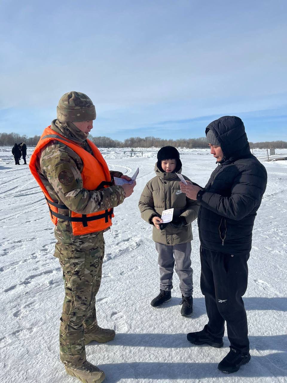 Рейдтік және ақпараттық-түсіндіру іс-шаралары барысында азаматтарға мұздағы қауіпсіздік қағидаларын жеткізді, Қазақстан Республикасы заңнамасының талаптары түсіндіріледі және оларды бұзғаны үшін жауапкершілік туралы ескертілді. Автокөлік құралдарының арнайы жабдықталған және ресми рұқсат етілген өткелдерден тыс мұзға шығуына жол бермеуге ерекше назар аударылады.