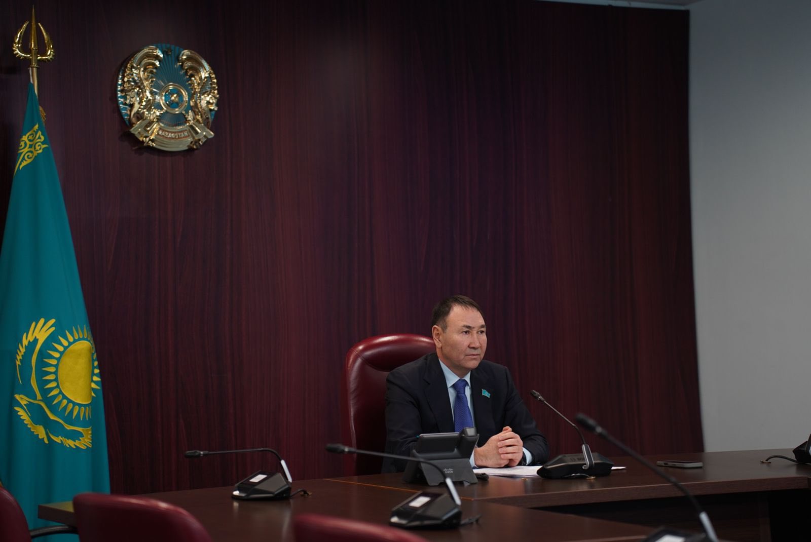 Онлайн режимінде Қазақстан Республикасы Парламенті Сенаты жанындағы мәслихаттармен өзара іс-қимыл жөніндегі кеңестің «Жаңа Конституция — ұзақ мерзімді дамудың берік негізі» тақырыбындағы отырысына Қазақстан Республикасы Парламенті Сенатының Төрағасы Мәулен Сағатханұлы Әшімбаевтың қатысуымен өтті.