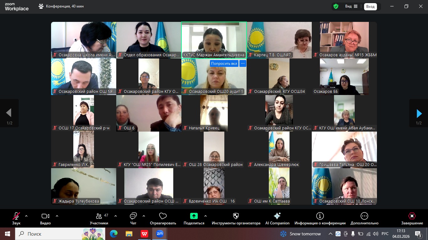4 наурыз 2026 жылы Осакаров ауданының білім беру бөлімі инклюзивті білім беру мәселелері бойынша ата-аналар қоғамдастығымен кезекті онлайн-кездесу өткізді.