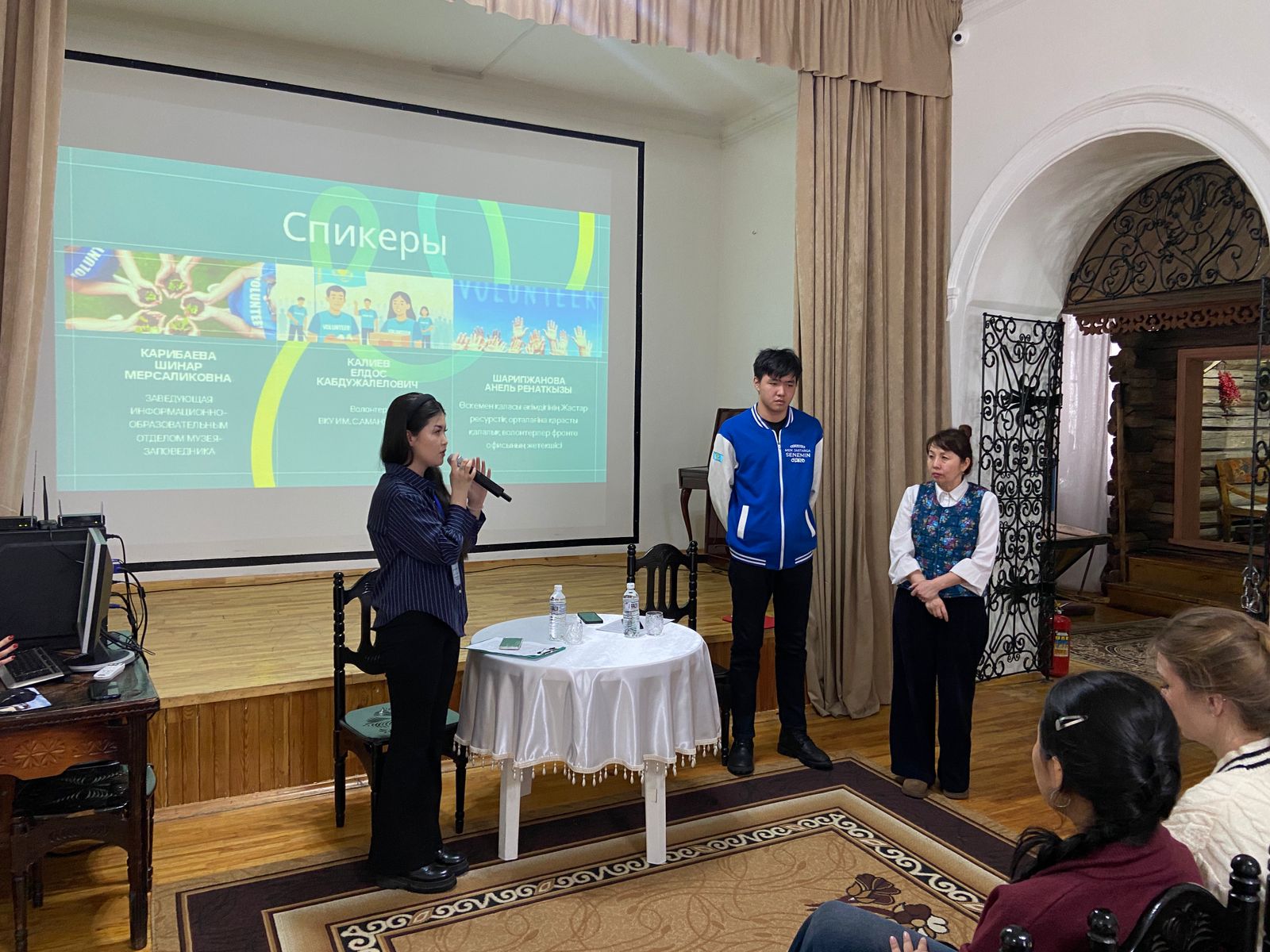 «Заң мен тәртіп» тұжырымдамасы аясында ШҚО этнографиялық музейінің қызметкерлері С. Аманжолов атындағы ШҚУ-дың 1-курс студенттері мен музей қызметкерлеріне «Қазақстандағы волонтерлік қызмет: бағыттары мен ерекшеліктері. Волонтерлік қозғалыс – патриоттық тәрбие берудің құралы ретінде» атты іс-шара өткізді. Іс-шара құқықтық және әлеуметтік мәдениетті қалыптастыруға, қоғамдағы азаматтық жауапкершілік қағидаттарын нығайтуға, Қазақстандағы волонтерлік қозғалысты насихаттауға бағытталды. Спикерлер ретінде Жастар ресурстық орталығының қалалық волонтерлік фронт-офисінің жетекшісі Анель Ренатқызы Шарипжанова, С. Аманжолов атындағы ШҚУ студенті, волонтер Елдос Калиев және музей-қорықтың ақпараттық-ағарту бөлімінің меңгерушісі Ш.М. Карибаева сөз сөйледі.