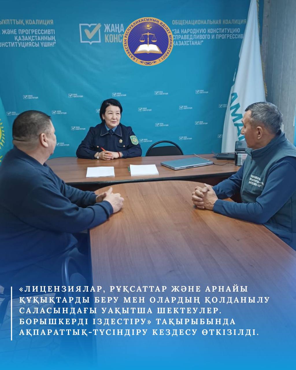 06.03.2026 ж. «№3 ауданаралық мәжбүрлеп орындау аумақтық бөлімі» филиалының сот орындаушысы СҚО Аққайың ауданында «Amanat» партиясының алаңында жастар ұйымдары мен үкіметтік емес ұйымдардың өкілдерінің қатысуымен «Лицензиялар, рұқсаттар және арнайы құқықтарды беру мен олардың қолданылуы саласындағы уақытша шектеулер. Борышкерді іздестіру» тақырыбында ақпараттық-түсіндіру кездесуін өткізді.