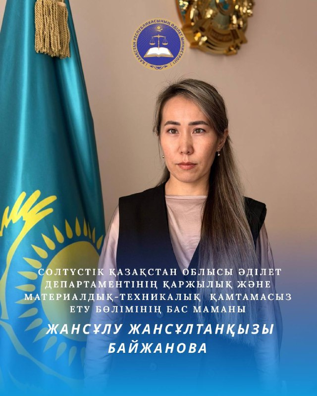Солтүстік Қазақстан облысы Әділет департаментінің қаржылық және материалдық-техникалық қамтамасыз ету бөлімінің бас маманы Жансұлу Жансұлтанқызы Байжанова.